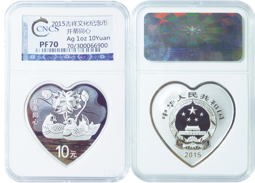 編號:2016-0406-ag-30g,年號:2016,國別:中國,面額:10元,材質:銀,成色:99.9%,質量:精制,重量:30克,形狀:心形,直徑:外接正方形邊長40mm,發行量:60000枚。